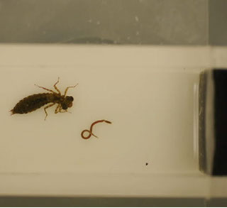 Conducting a preliminary feeding experiment with dragonfly nymphs and newt larvae.