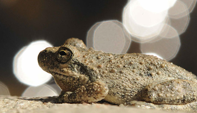 This is one of the tree frog species that will be studied in this project, Pseudacris cadeverina. It is a stream-breeding specialist, and its patterns will be compared to a generalist breeder.